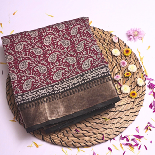 Chanderi silk sarees feature a lightweight, sheer fabric adorned with elegant golden or silver check patterns.