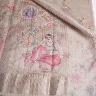 Tissue sarees are known for their glossy, shimmering finish and lightweight feel.