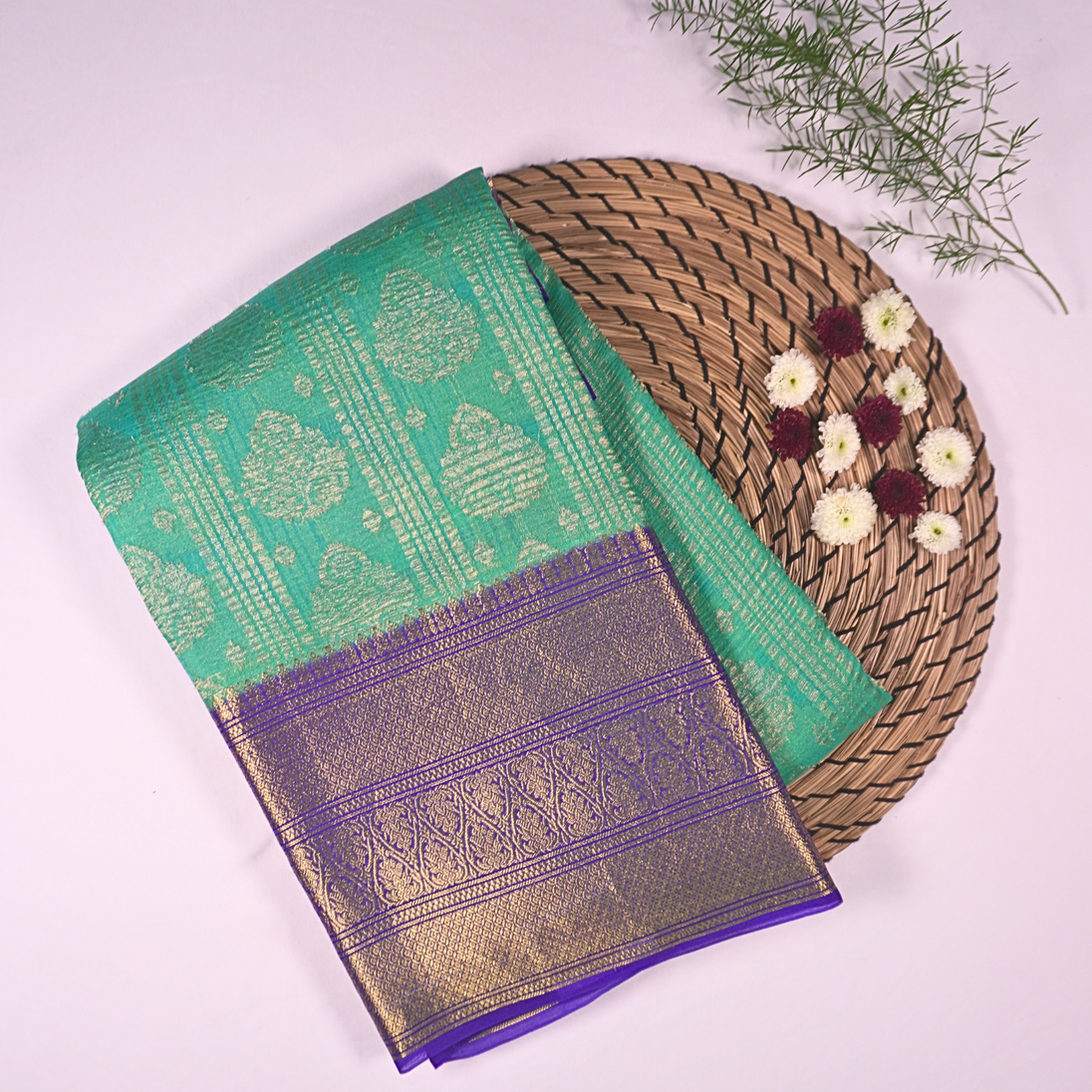 Kora silk sarees are woven from pure silk yarn, giving them a sheer, lightweight feel.