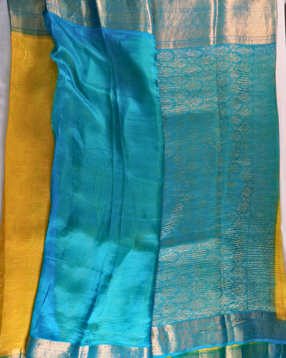 Kora silk sarees are woven from pure silk yarn, giving them a sheer, lightweight feel. Their subtle shine and crisp texture make them perfect for graceful, traditional looks.