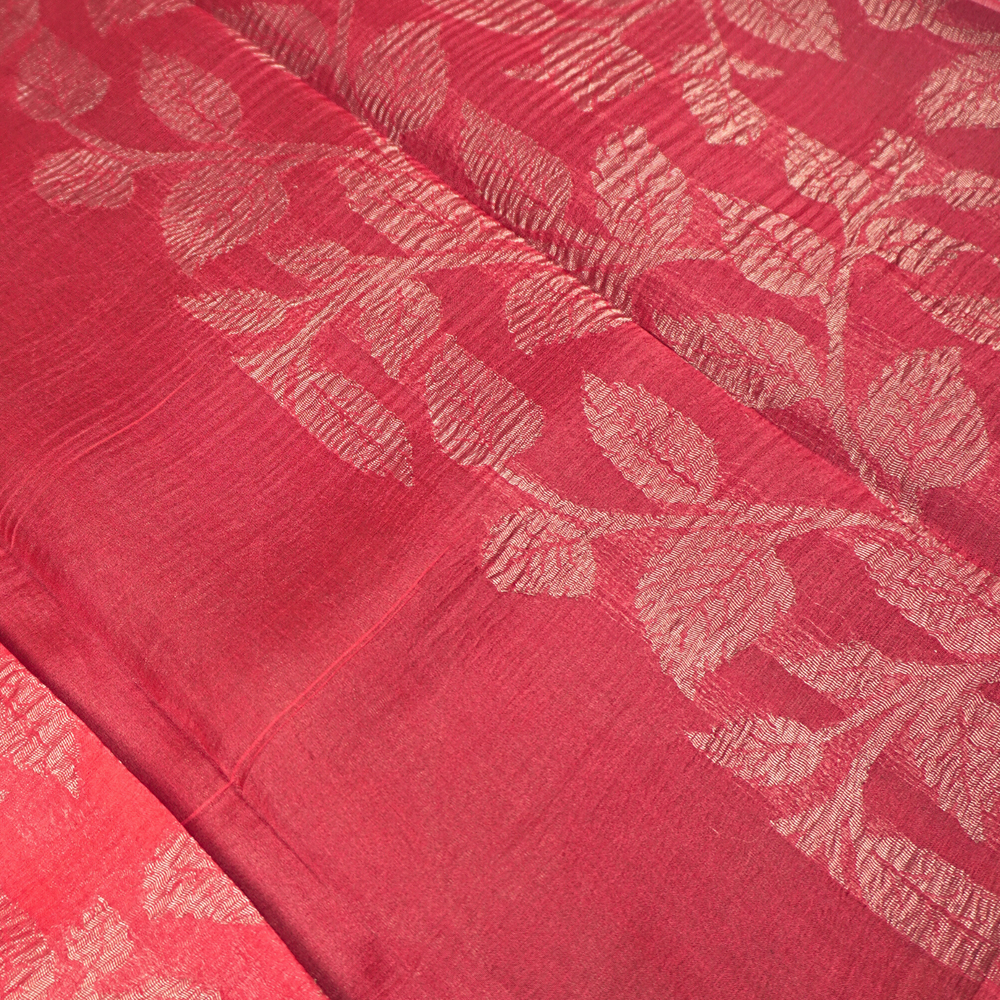 Kora silk sarees are woven from pure silk yarn, giving them a sheer, lightweight feel.
