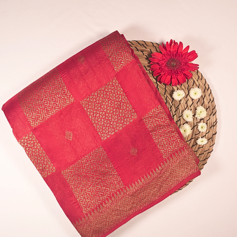 Slub silk sarees have a unique textured weave with irregular patterns that add character to the fabric.