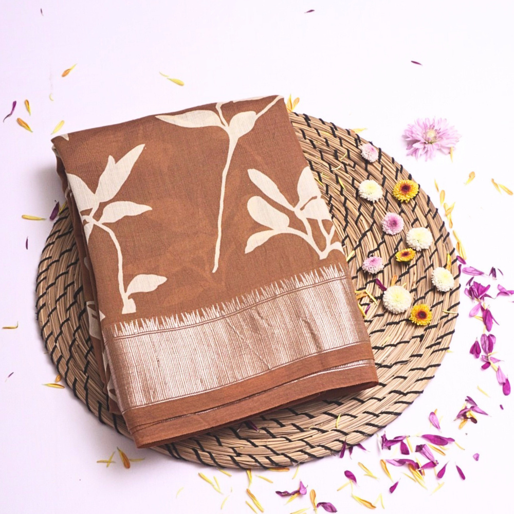 Spun silk sarees are made from silk fibers that are spun like cotton, giving them a soft and matte texture.