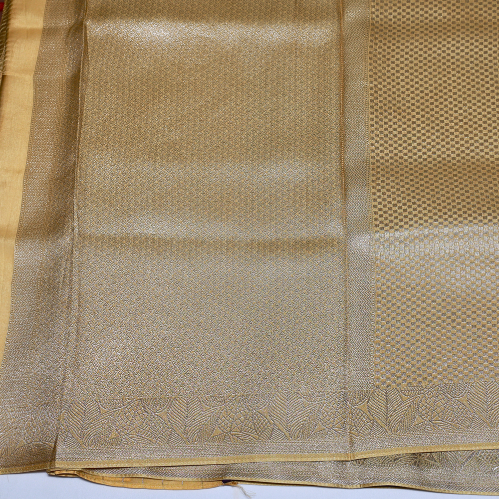 Tissue sarees are known for their glossy, shimmering finish and lightweight feel.